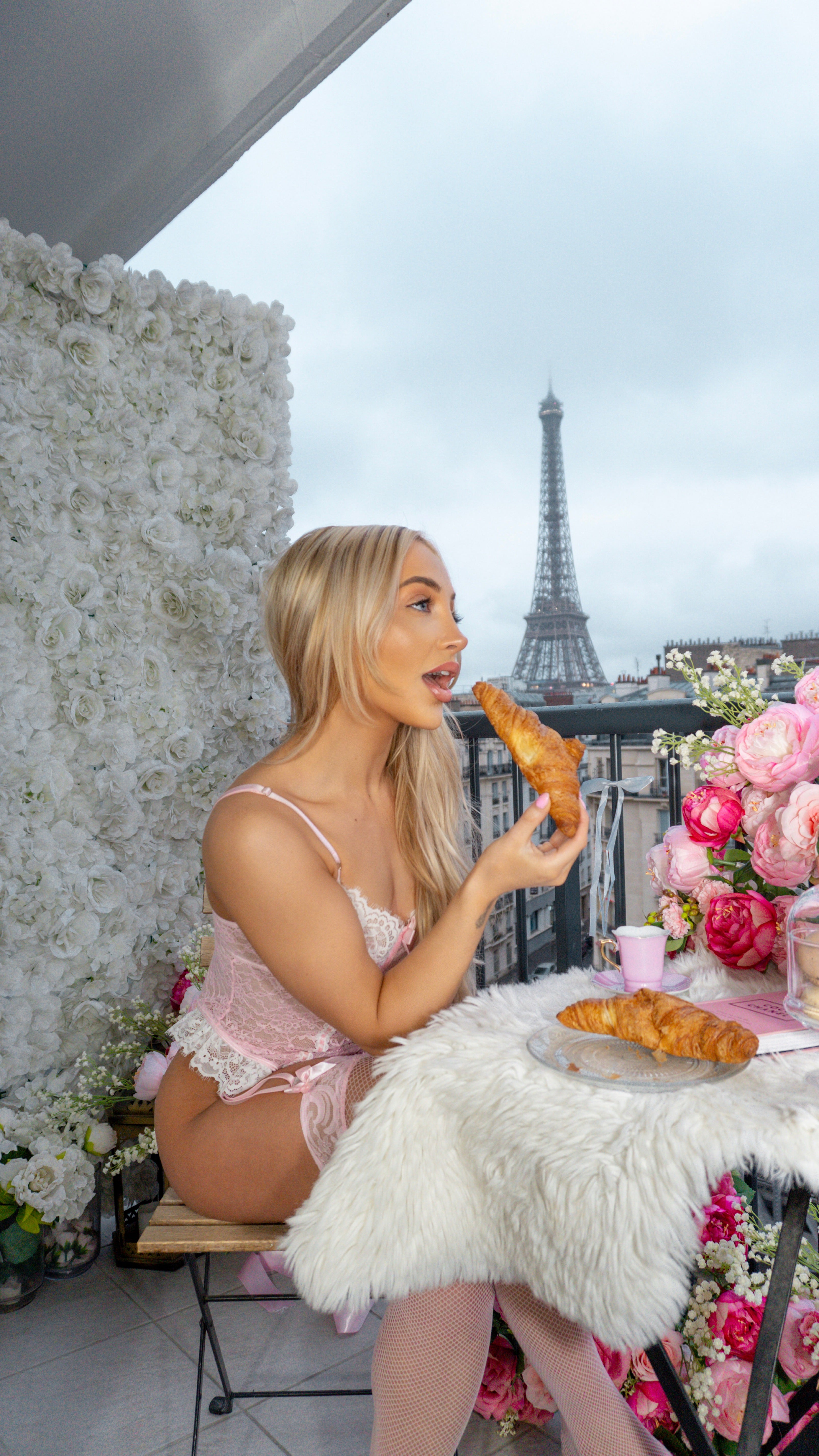 Romance your mornings in the Breakfast in Paris bodysuit — a pastel dream crafted in delicate blush pink lace with soft white scallop trim. Designed to hug your curves in all the right places, this feminine piece features a dainty bow detail at the bust, adjustable straps, and the kind of comfort that feels like a second skin.