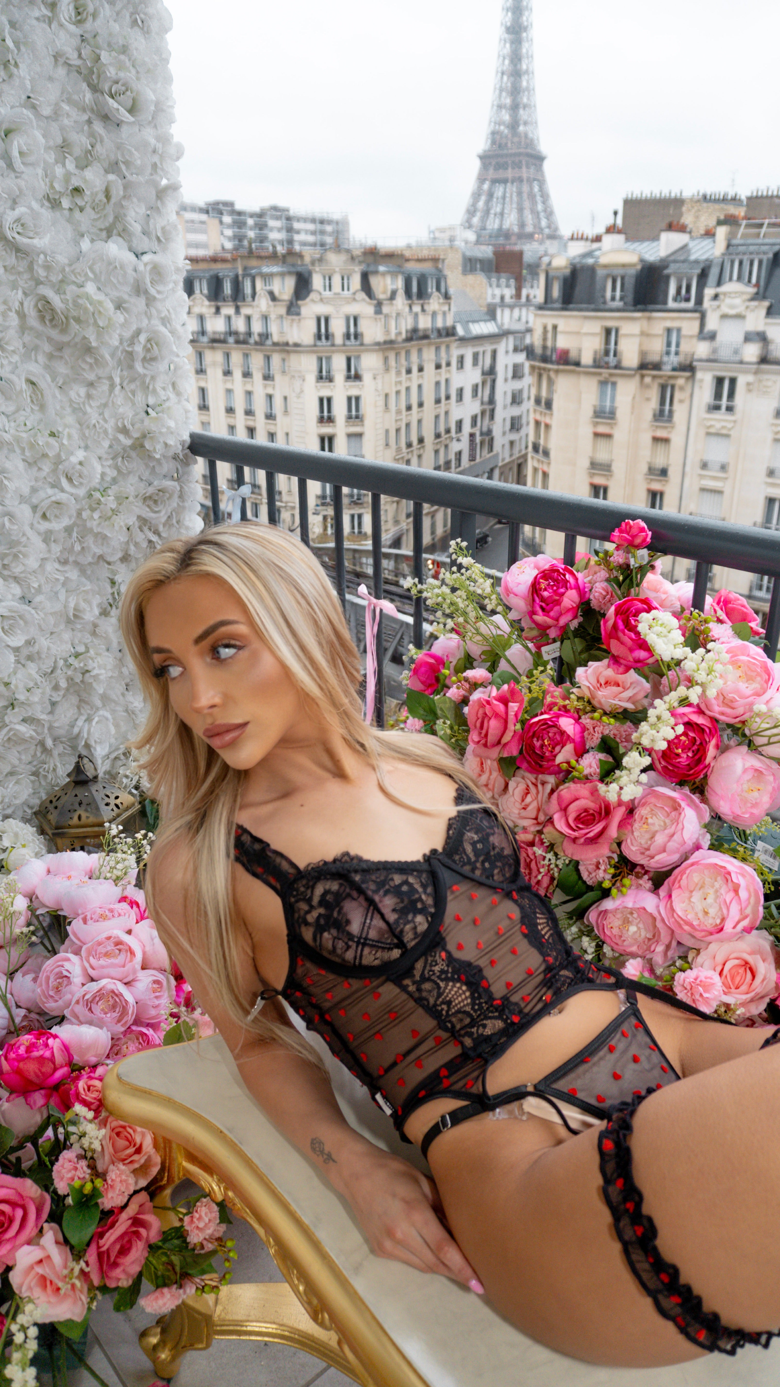 Fall head over heels for the Break His Heart Not His Car  — our ultra-seductive mesh corset set, made to steal glances and break a few hearts along the way. With sheer panelling, delicate lace and a playful pop of red velvet polka dots, this is the Valentine’s statement your wardrobe’s been waiting for.