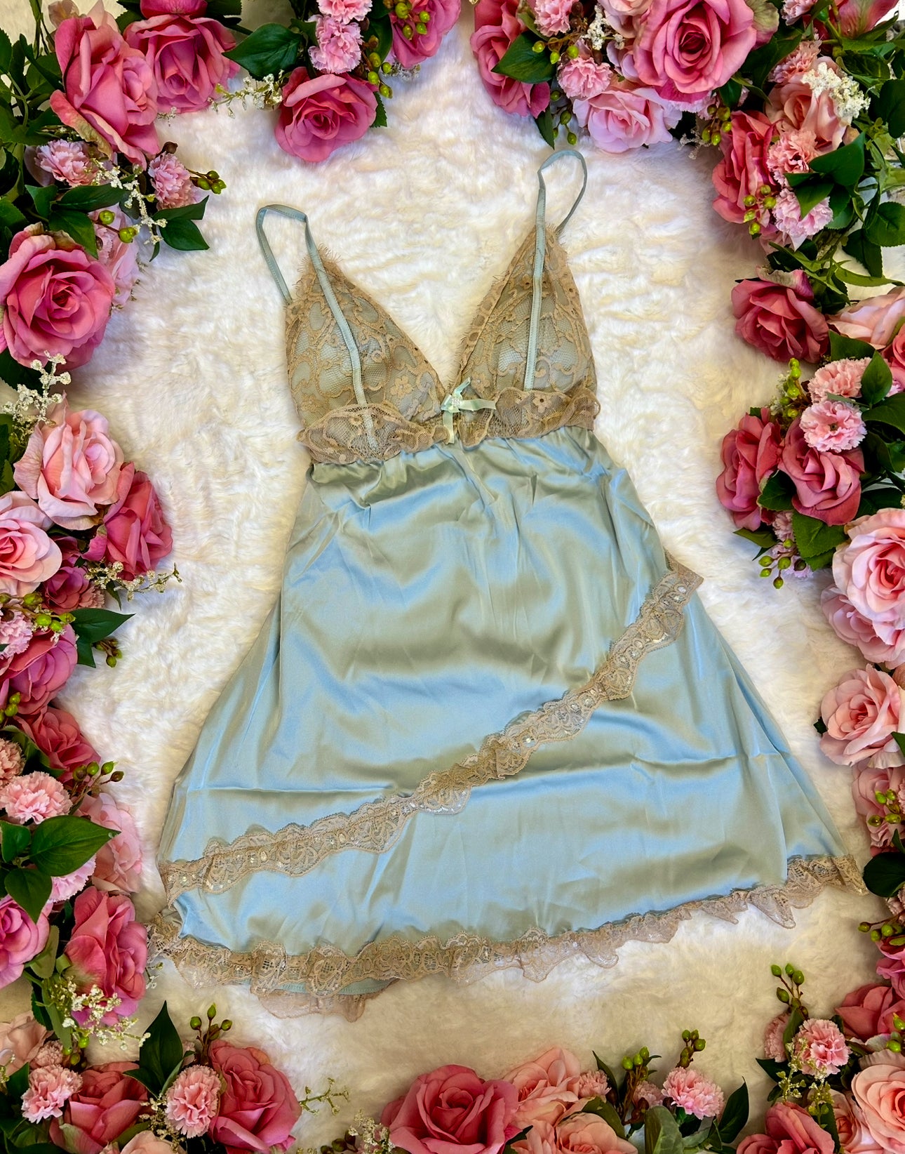 🌟 Hidden Flame Babydoll - Blue Satin & Lace Chemise 🌟