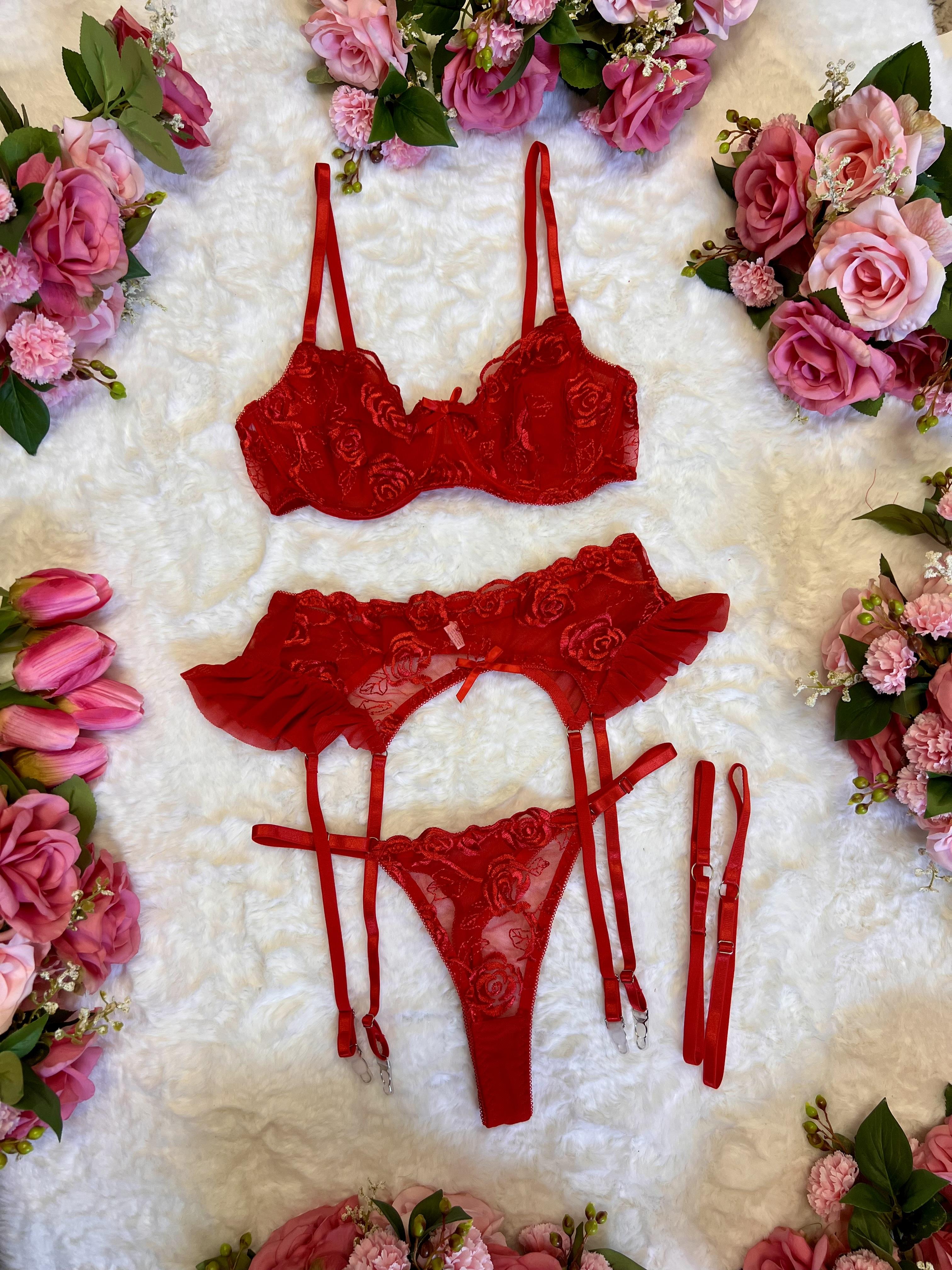 - ️ “Santa Baby” red floral lingerie set – festive, flirty and feminine