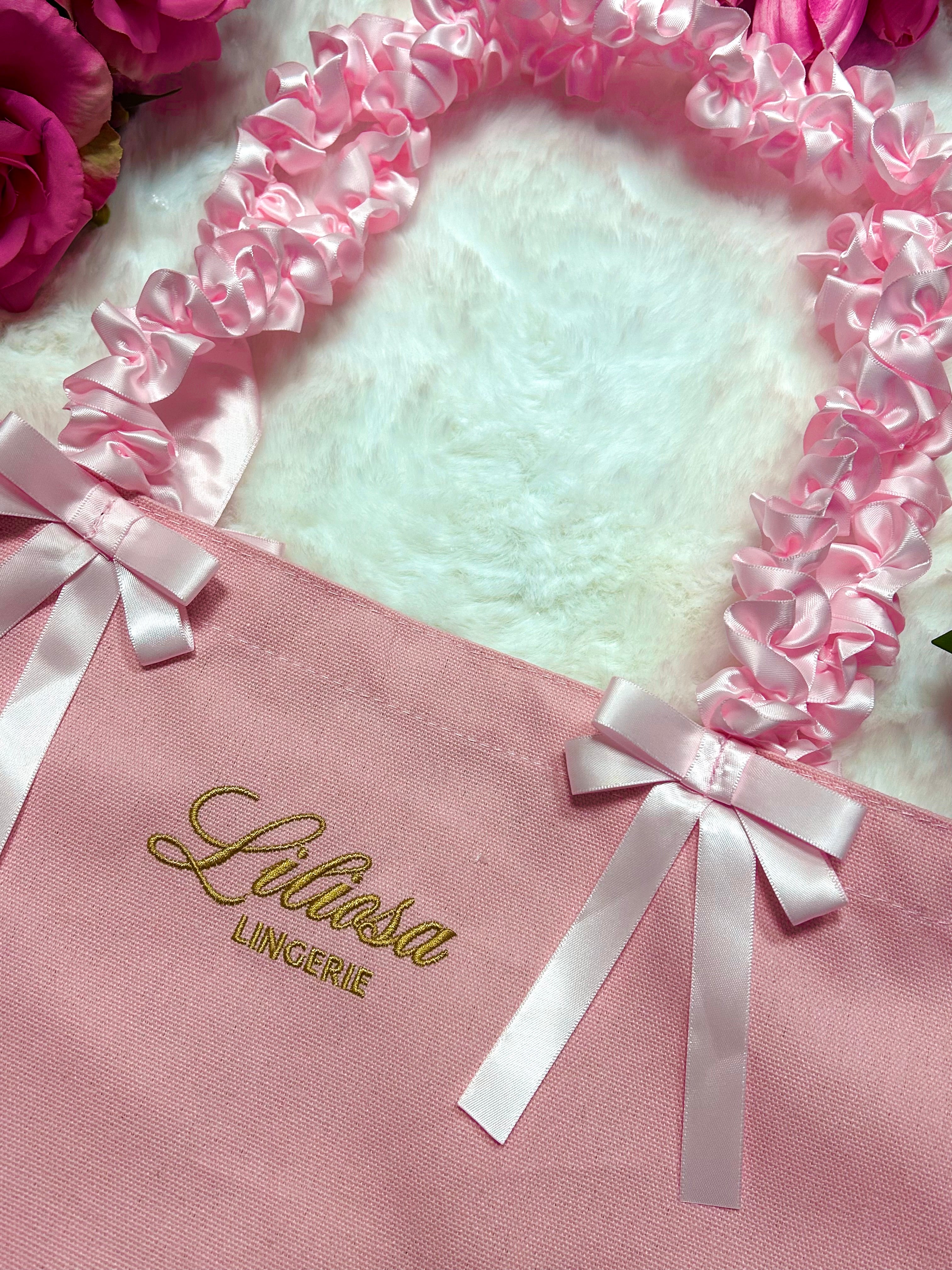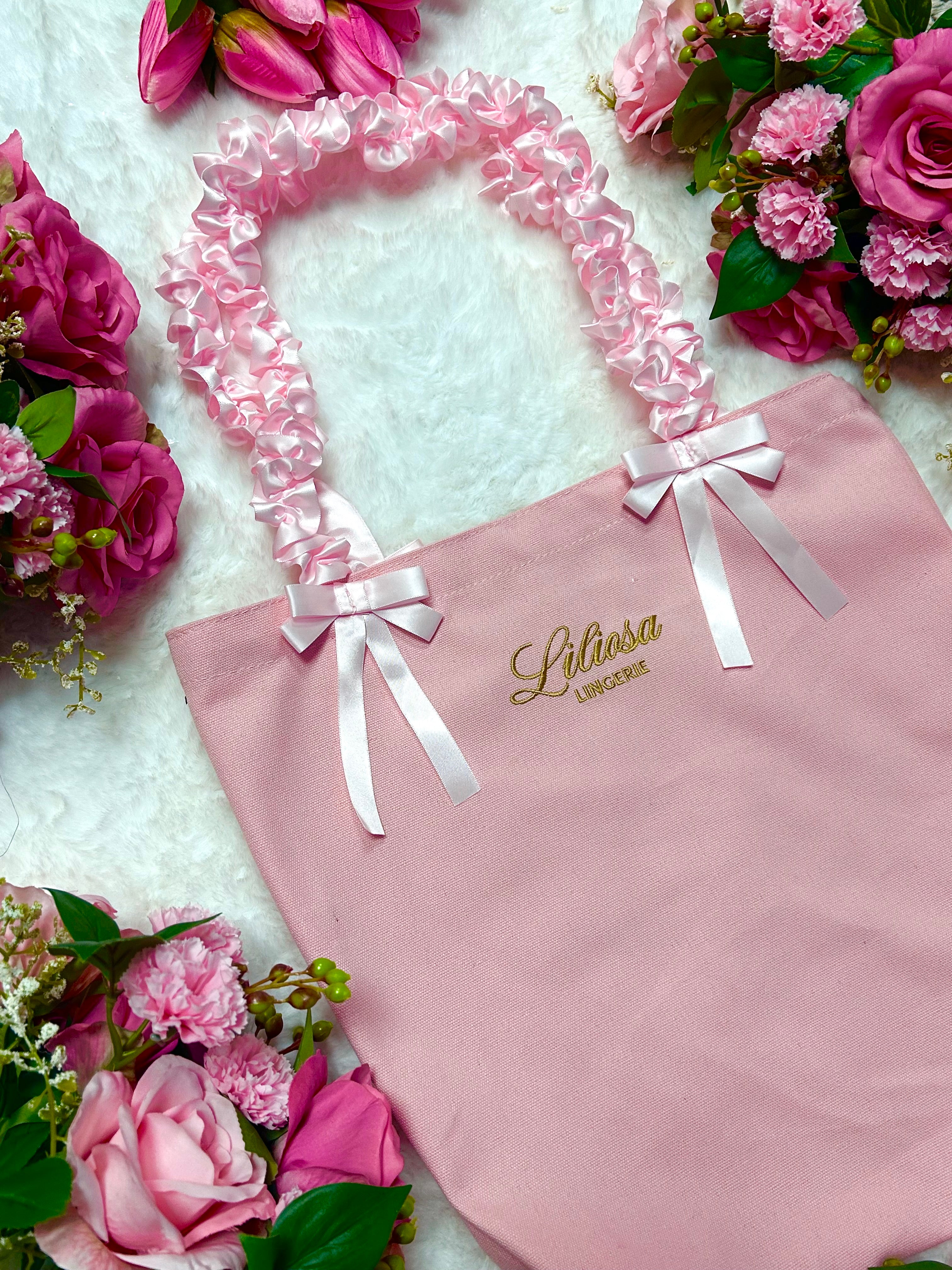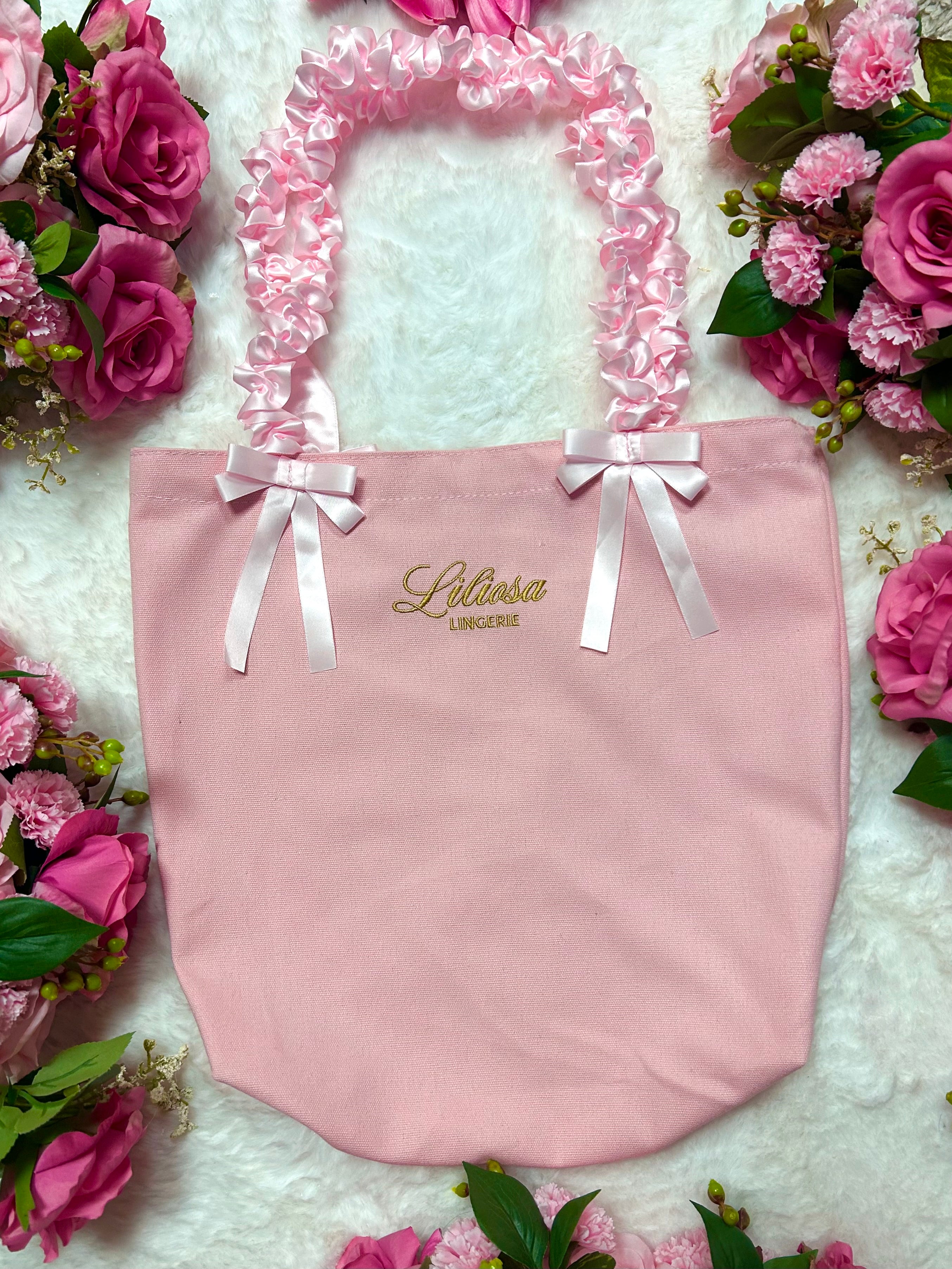 - Ruffle Handle: The tote bag comes with a ruffle handle, adding a cute and girly touch.