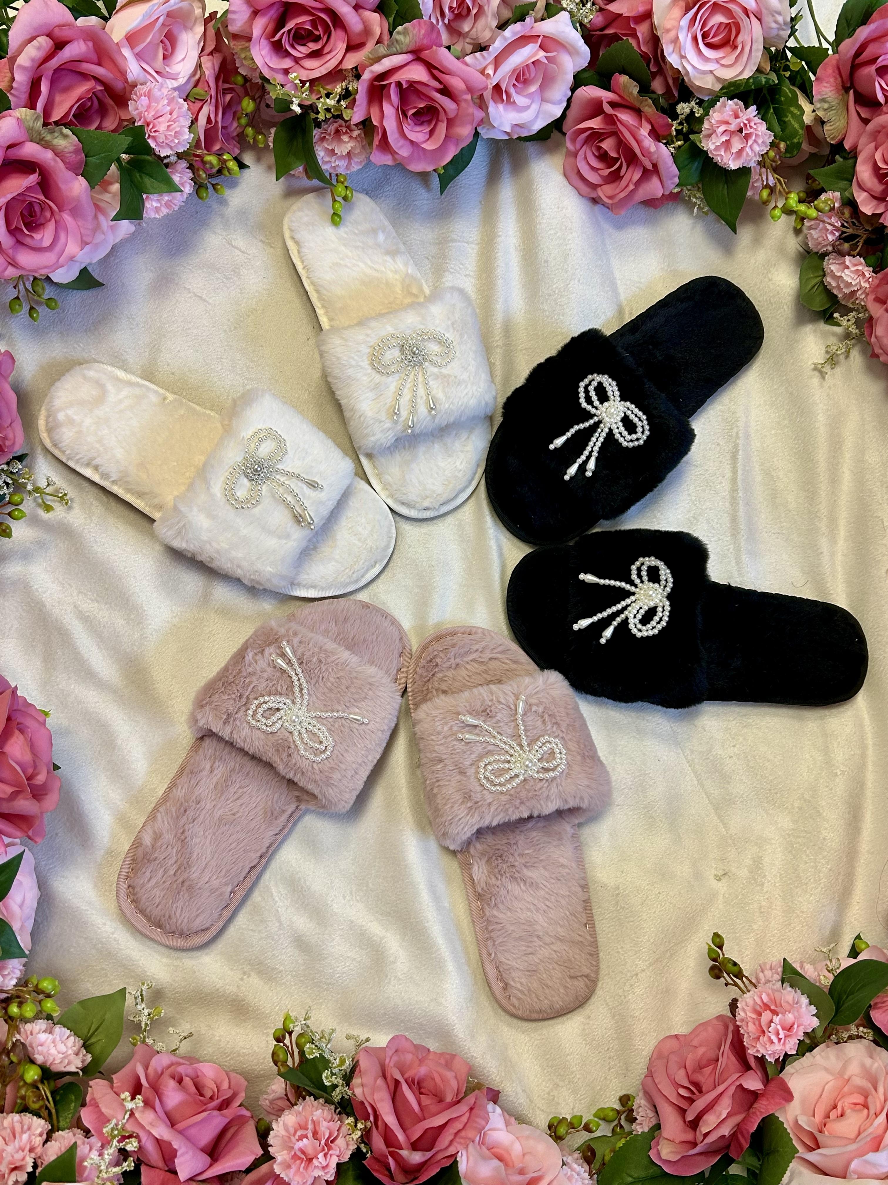 ✨ Elevate your loungewear with the Bon Bon Bow Slippers! These slippers feature a luxurious satin bow on a plush faux fur base. They offer a perfect blend of comfort and style, ideal for cozy evenings or self-care days. Slip them on for a chic, relaxed look at home.