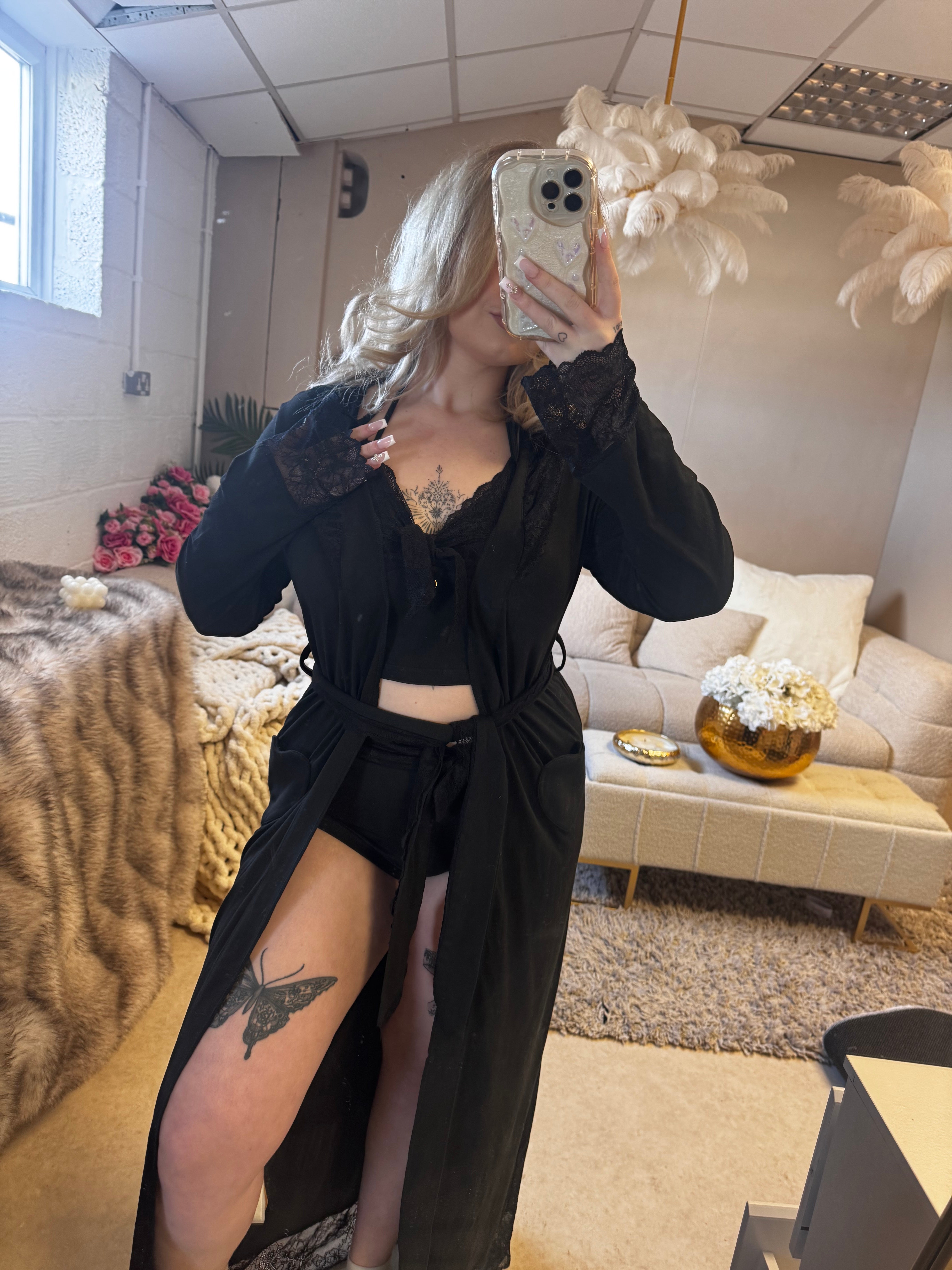 • Elegant Design: The LILIOSA Long Black Milk Silk Dressing Gown features a lace trim, adding a touch of sophistication. 🎀