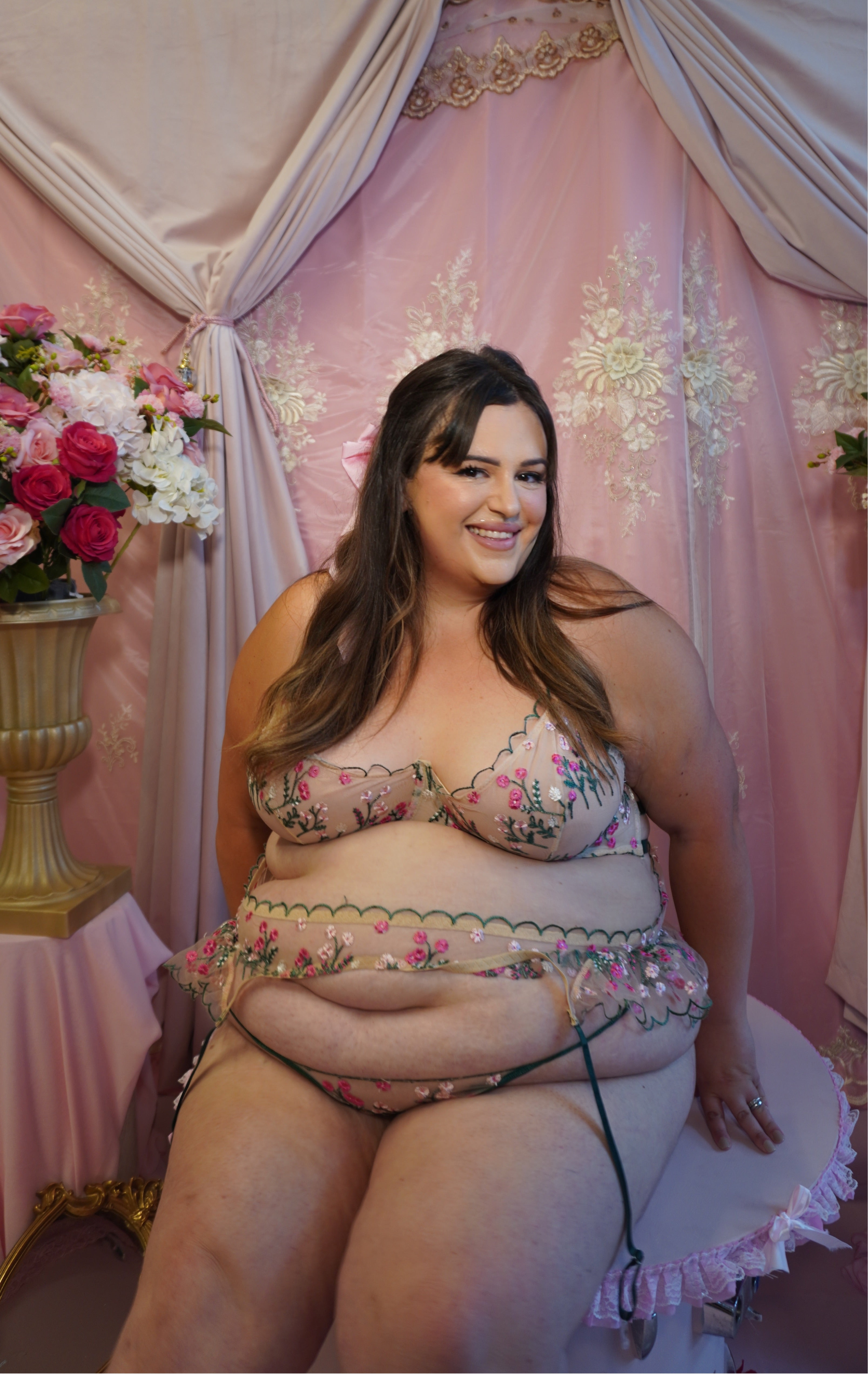 Step into your fairytale moment with the Wildflower 3 Piece Set Designed with our Curveabella babes in mind, this plus-size friendly lingerie set combines elegance, comfort, and pure romance.
